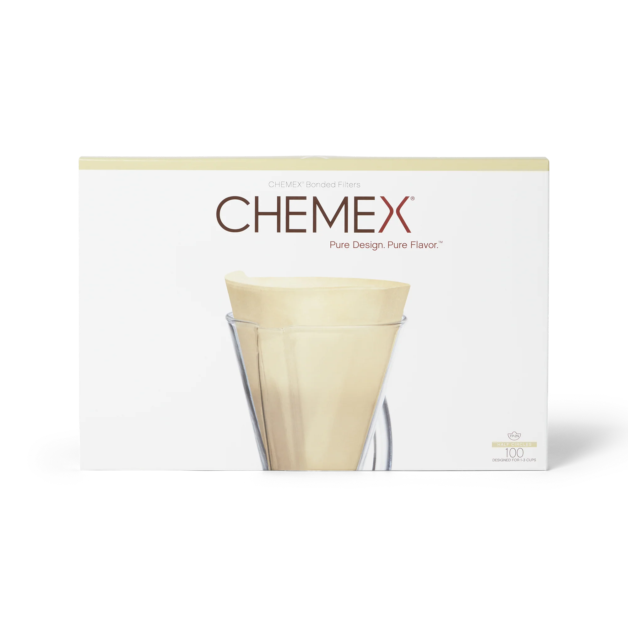 The Chemex FP-2N are unfolded natural half-moon filters designed exclusively for Chemex 1-3 cup brewers - the CM-1C, CM-1GH, and handblown CM-1. If you have a larger Chemex, you'll need the FS-100 squares or FC-100 circles instead.